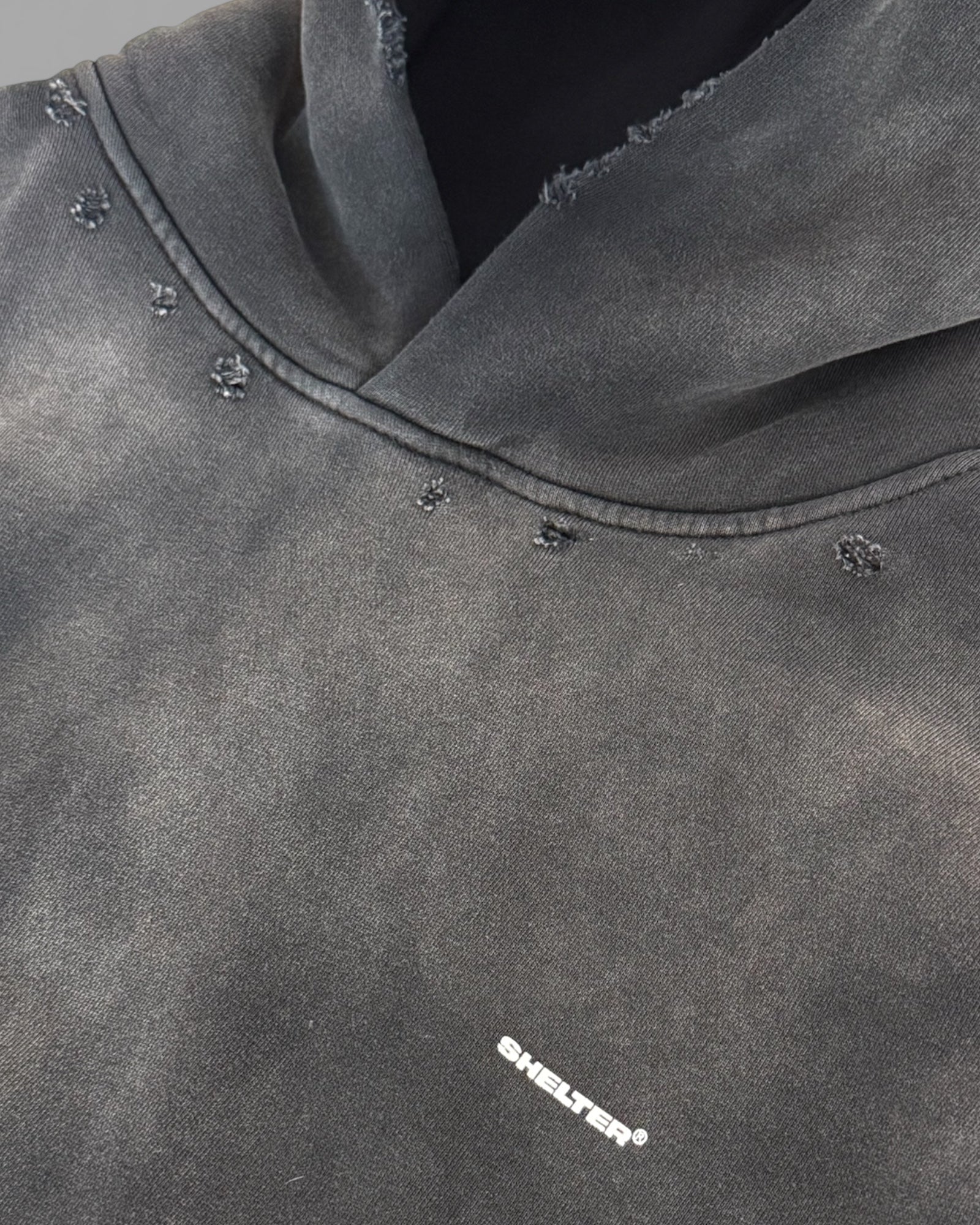 Built to feel familiar from the first wear, the Worn In Hoodie is washed and lightly distressed for a truly lived-in hand feel. Heavy enough to hold its shape, soft enough to disappear on your body. Designed with a relaxed silhouette that works pre-run, post-run, or nowhere near a start line. Finished with the SHELTER logo — understated, intentional, and earned.