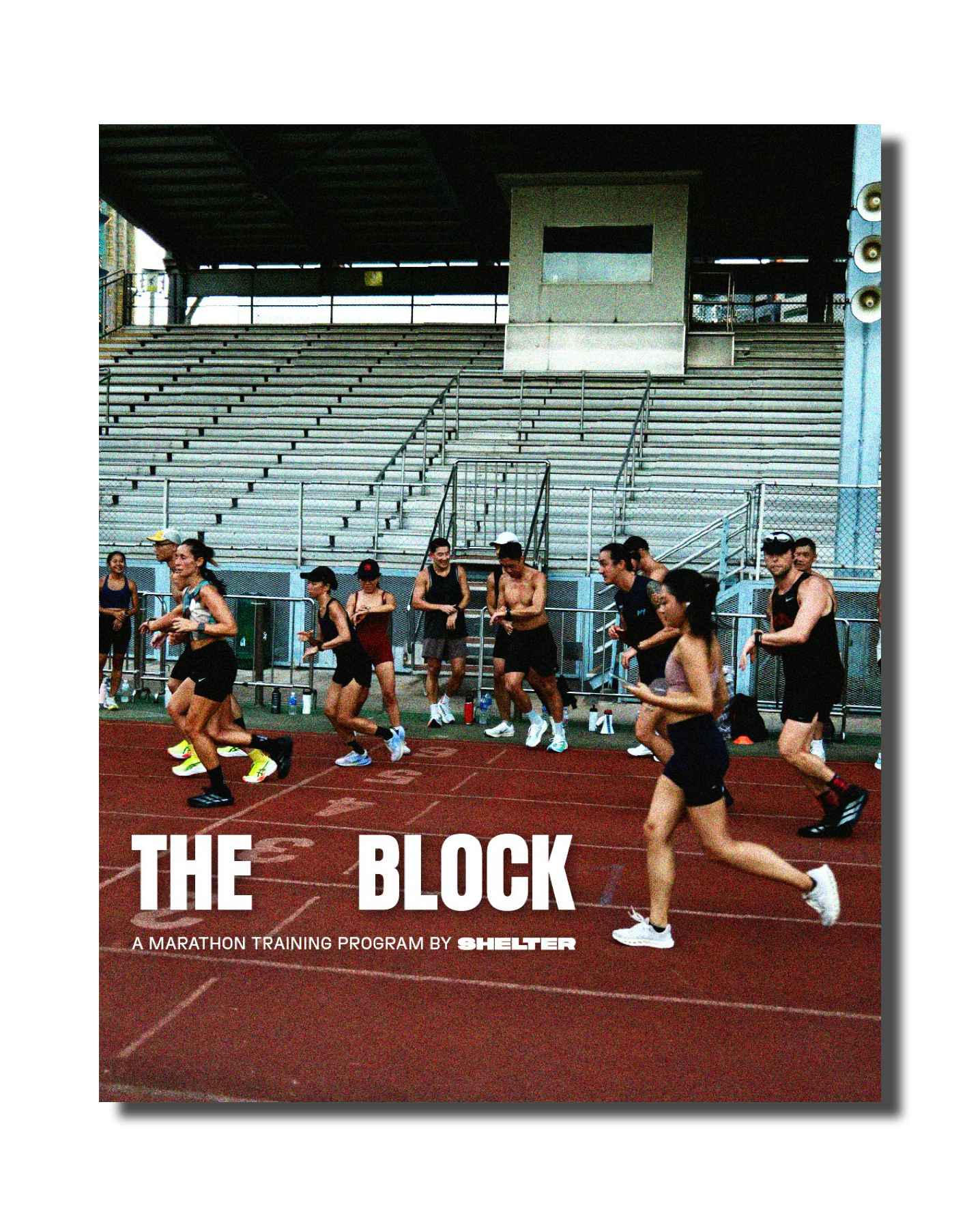 THE BLOCK is SHELTER Athletics’ official marathon training program — a 14-session group coaching experience led by Coach Jose from Track Night. Designed for full, half, and 10KM runners, each session builds structure, consistency, and community into your marathon prep. First session starts on October 29th to January 17th.